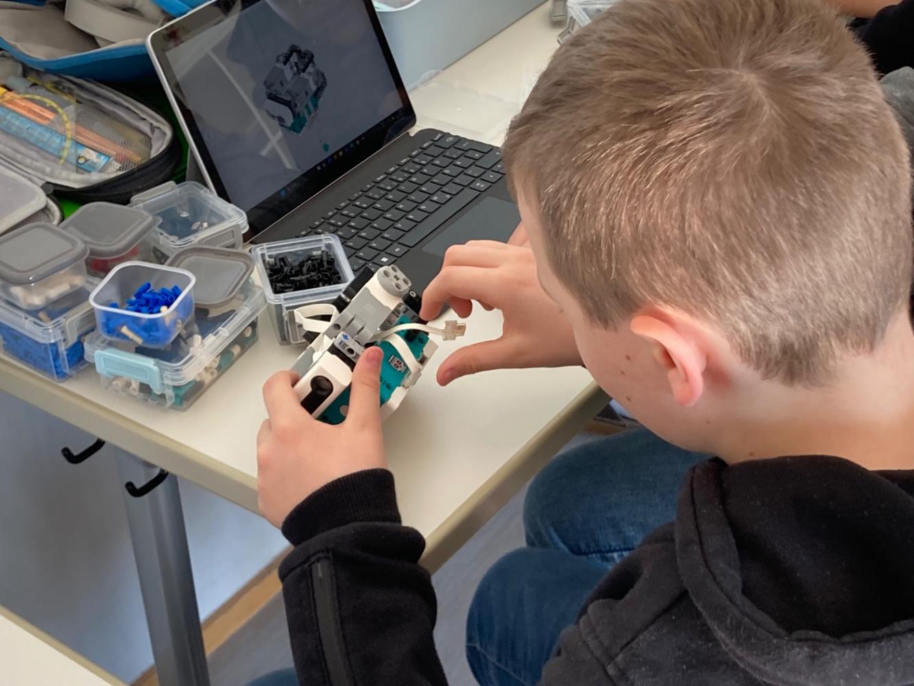 Nach dem Bau der Roboter folgte die Programmierung. Hierbei erhielten die Teilnehmenden eine Einführung in die Grundlagen des Codierens. Auf spielerische Art und Weise programmierten sie ihre Roboter so, dass diese beispielsweise Hindernisse erkennen und ausweichen oder bestimmten Linien auf dem Boden folgen konnten. Dabei lernten sie zentrale Begriffe und Konzepte der Robotik und Softwareentwicklung kennen, wie etwa Algorithmen, Sensorik und Automatisierung. Ein Schwerpunkt lag auf dem praktischen Ausprobieren und dem Umgang mit Problemen: Wenn ein Roboter sich nicht wie gewünscht bewegte, hieß es, Fehler zu suchen, Lösungen zu finden und die Programmierung entsprechend anzupassen – ein wichtiger Lernprozess, der die Kreativität und das Durchhaltevermögen der Schülerinnen und Schüler stärkte.