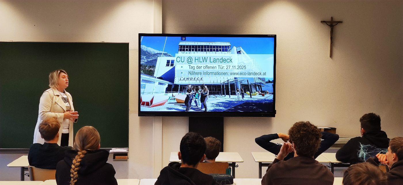 Am 05. November 2025 besuchte Bianca Espa die vierten Klassen, um die Höhere Lehranstalt für wirtschaftliche Berufe (HLW) Landeck vorzustellen. Die Schülerinnen und Schüler erhielten dabei spannende Einblicke in die vielfältigen Ausbildungsmöglichkeiten an der Schule.