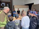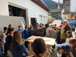 Zu Mittag wurden wir von ProHolz zum Mittagessen eingeladen und fuhren anschließend zu einer Betriebsbesichtigung. Eine junge Tischlerin erklärte uns verschiedene Hölzer, hobelte mit uns ein Latte und zeigte uns die hochmodernen, computergesteuerten Holzverarbeitungsmaschinen.