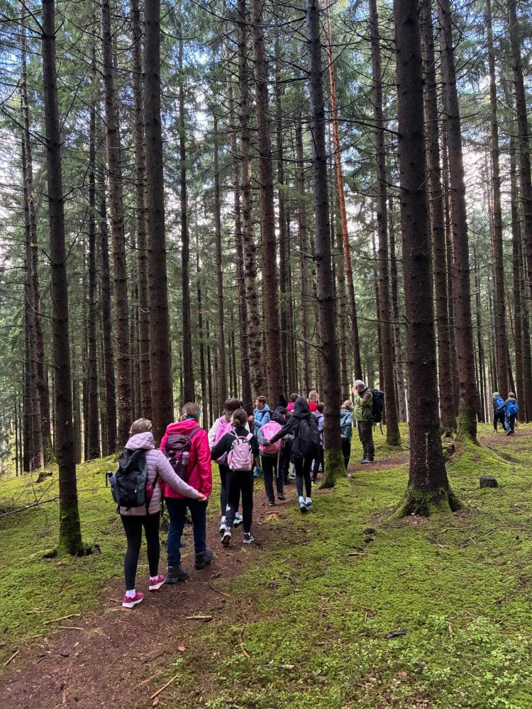 Bei kühlen Temperaturen, aber ohne Regen, verbrachten wir den Vormittag im Wald. Abwechselnd spielten wir Spiele, bauten eine Kugelbahn und vertieften unser Fachwissen.