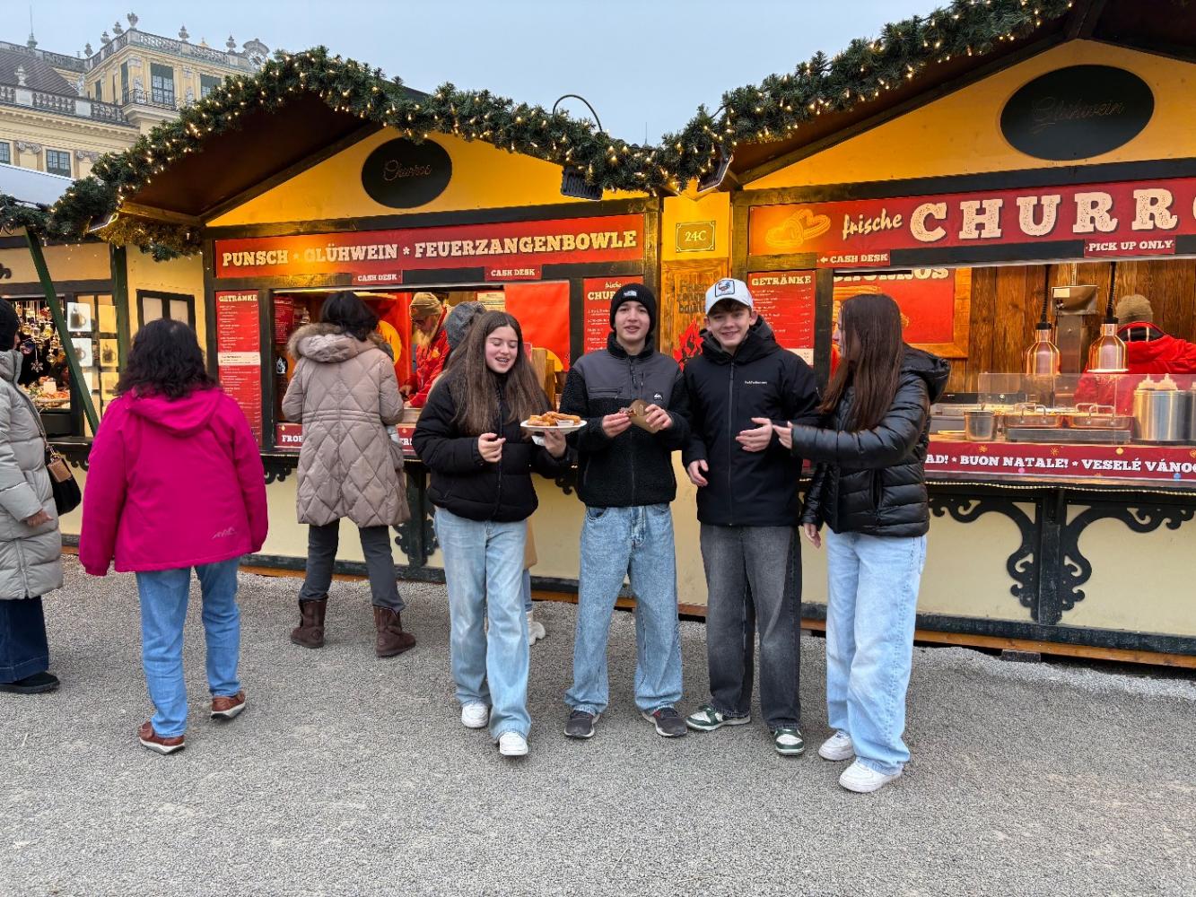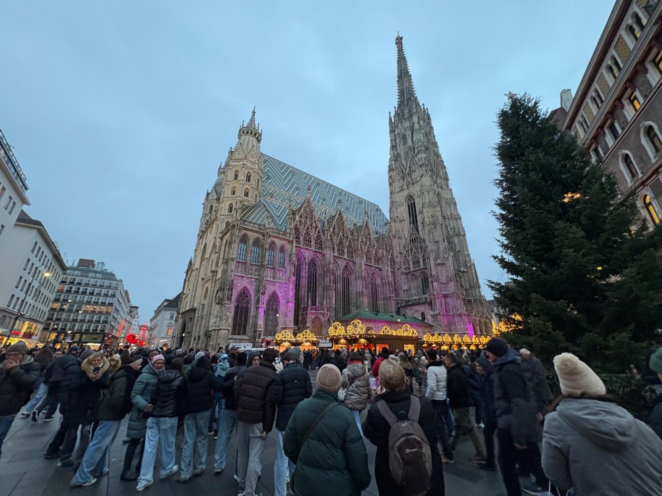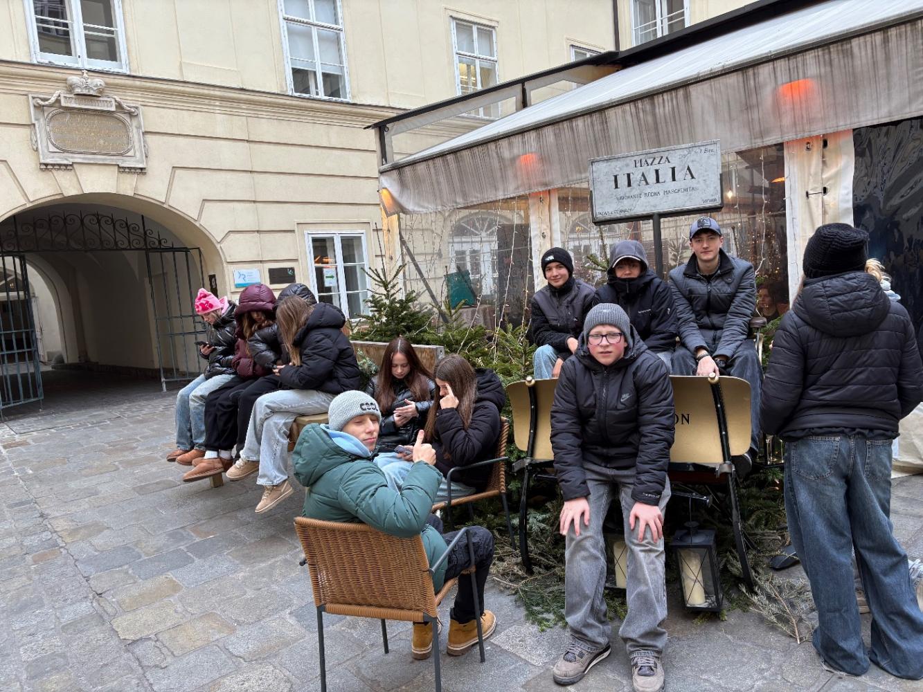 Heute besuchten wir das Schloss Schönbrunn und nahmen an einer spannenden Führung durch die prunkvollen Räume teil. Die Geschichten über das Leben am kaiserlichen Hof waren beeindruckend. Danach ging es ins Museum der Illusionen, wo wir viele verblüffende Effekte entdeckten und eine faszinierende Zaubershow erlebten, die uns richtig staunen ließ. Anschließend besuchten wir den Stephansdom und bestaunten die beeindruckende Architektur sowie den hohen Turm. Zum Abschluss des Tages spazierten wir über den Wiener Weihnachtsmarkt vor dem Rathaus. Die Lichter, der Duft von Punsch und die festliche Musik sorgten für eine wunderschöne Stimmung.